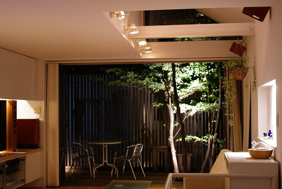 外からはほとんど中の様子が伺がえないのですが、中からは見える不思議な構造です。